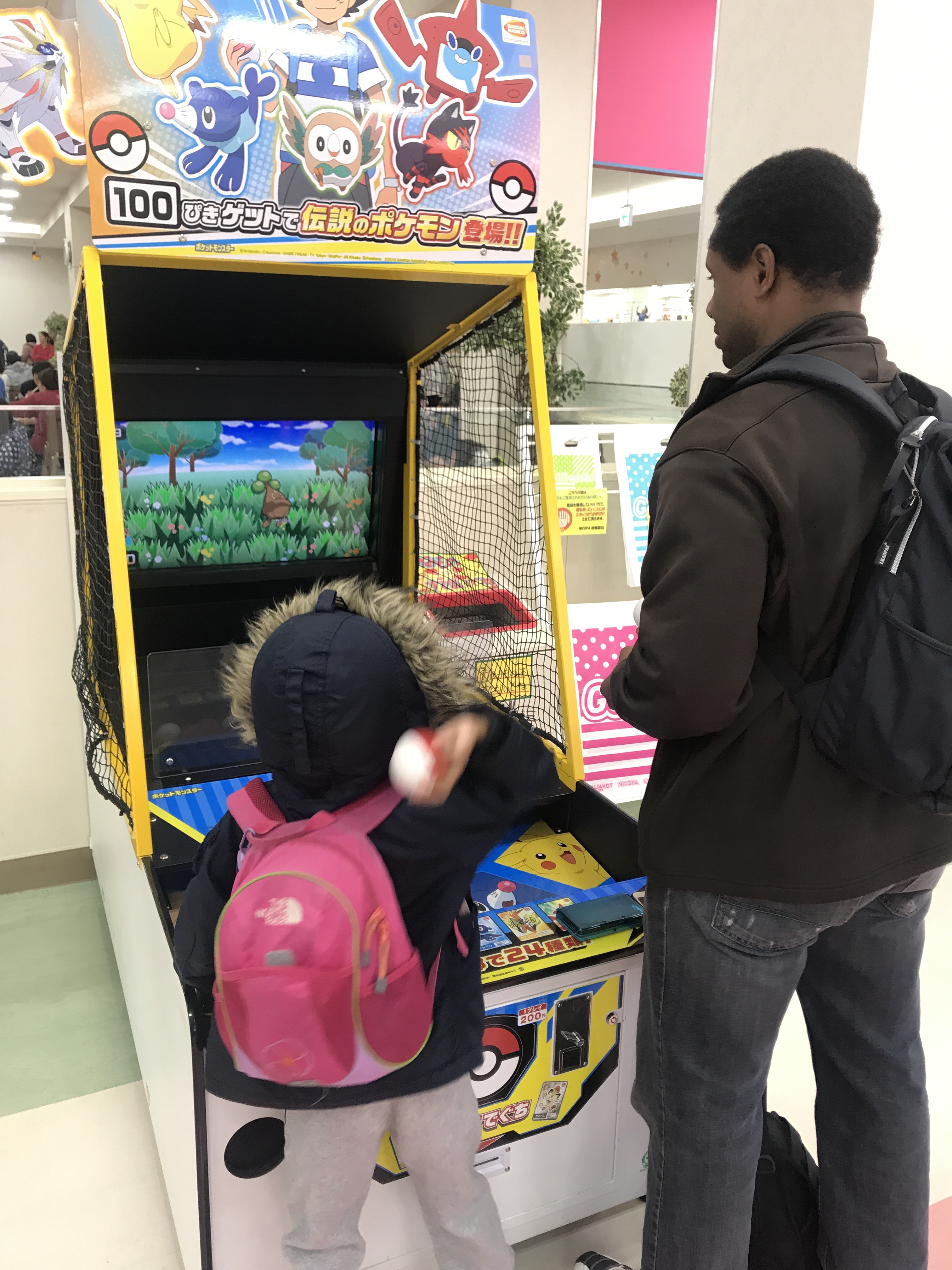 I don’t know if you know this but video games are a big deal in Japan. I mean like, next level. So the FarEastFurqans went Pokémon hunting Saturday and discovered a new game that puts you in the action, my daughter even got a playing card out of the deal with her suited up!!