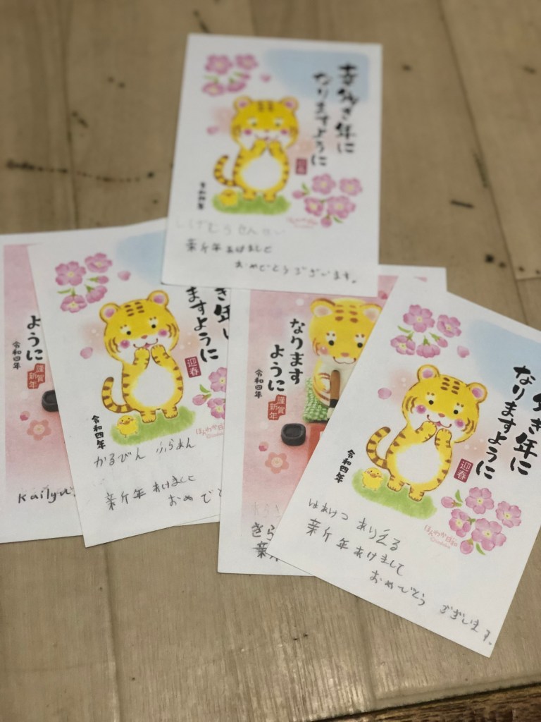 Similar to the American tradition of sending Christmas and New Year’s cards, this is the busiest time of year for the Japanese post offices, so much so that they normally hire student labor. Sent to family and friends historically it was a way to touch base with those you didn’t see often.