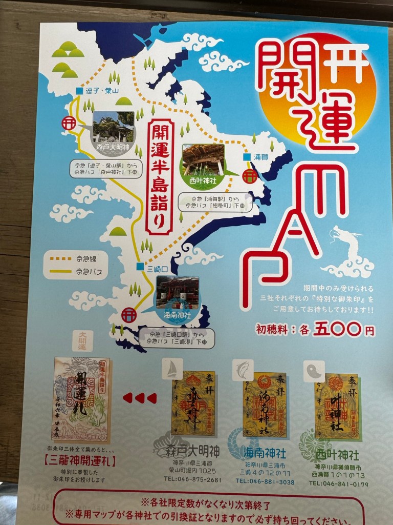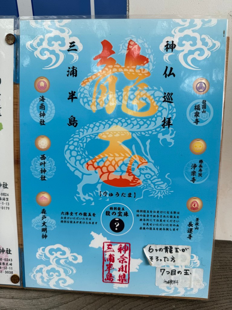 Is that time again, time to go hunting for goshuin and if you’ve seen my post about the Seven Lucky Gods then you’ve seen this one in my office hanging up! This year I was finally tracking the shrines that do this event and so I was able to catch it early enough to get all the stamps and the special stamp that I was unable to get the previous time I did it. All in all it took us about three hours starting at the furthest shrine from Yokosuka, then we went to Hayama and finished in Uraga.