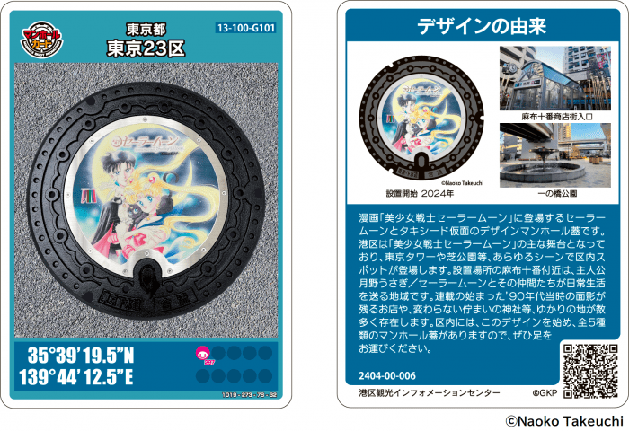 Next up is the manhole cover on my Google list featuring all the ladies with a blue background, the image color of Sailor Mercury. This cover is located near Shiba Park.